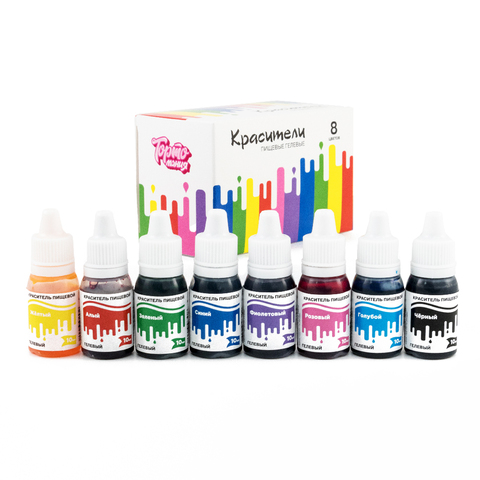 Набор гелевых пищевых красителей Тортомания 10 мл, 8 цветов