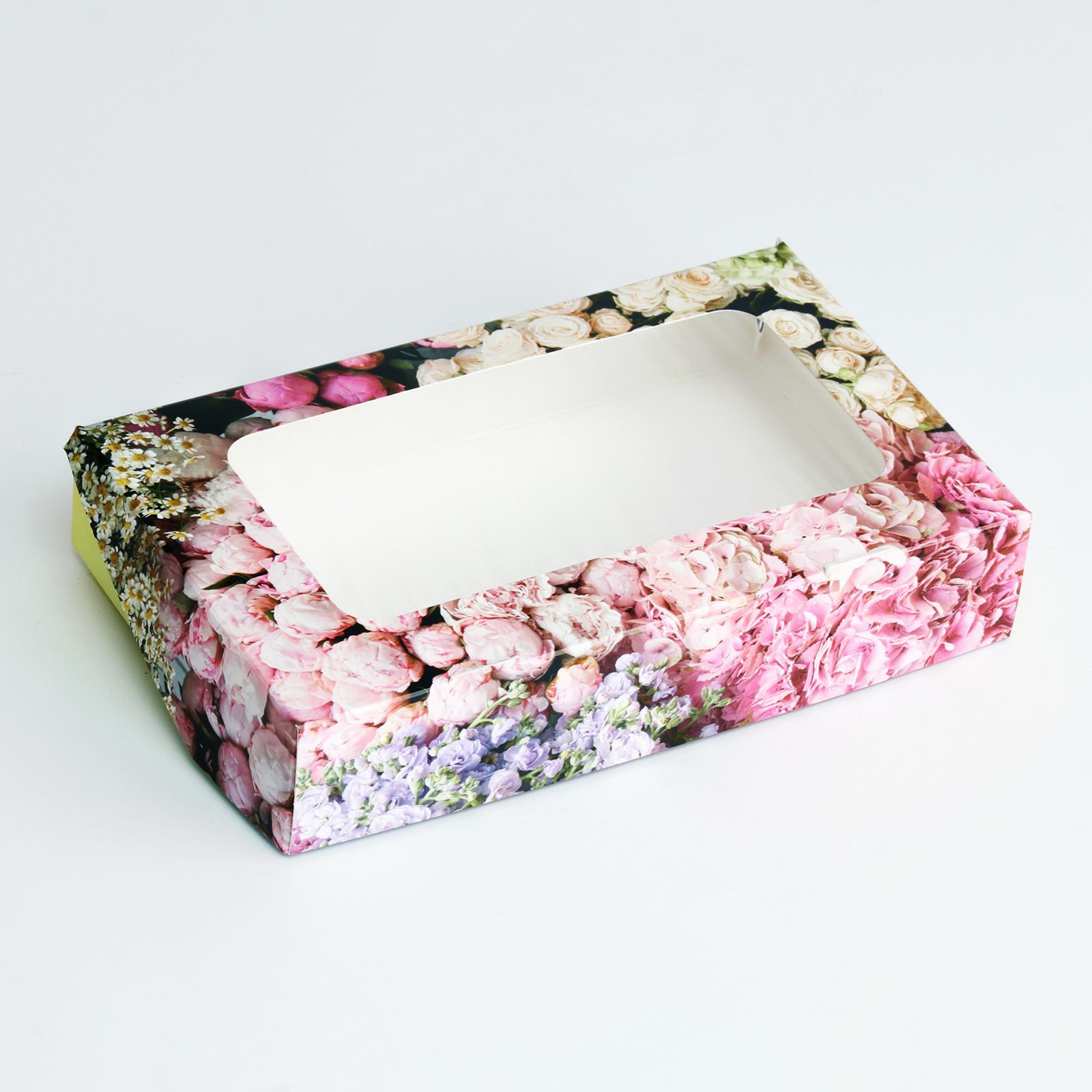 Коробка складная с окном "Цветы", 20 х 12 х 4 см