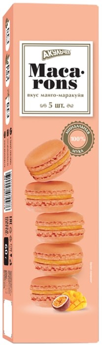 Пироженое миндальное макарон с манго-маракуйей "Акульчев", 60 г