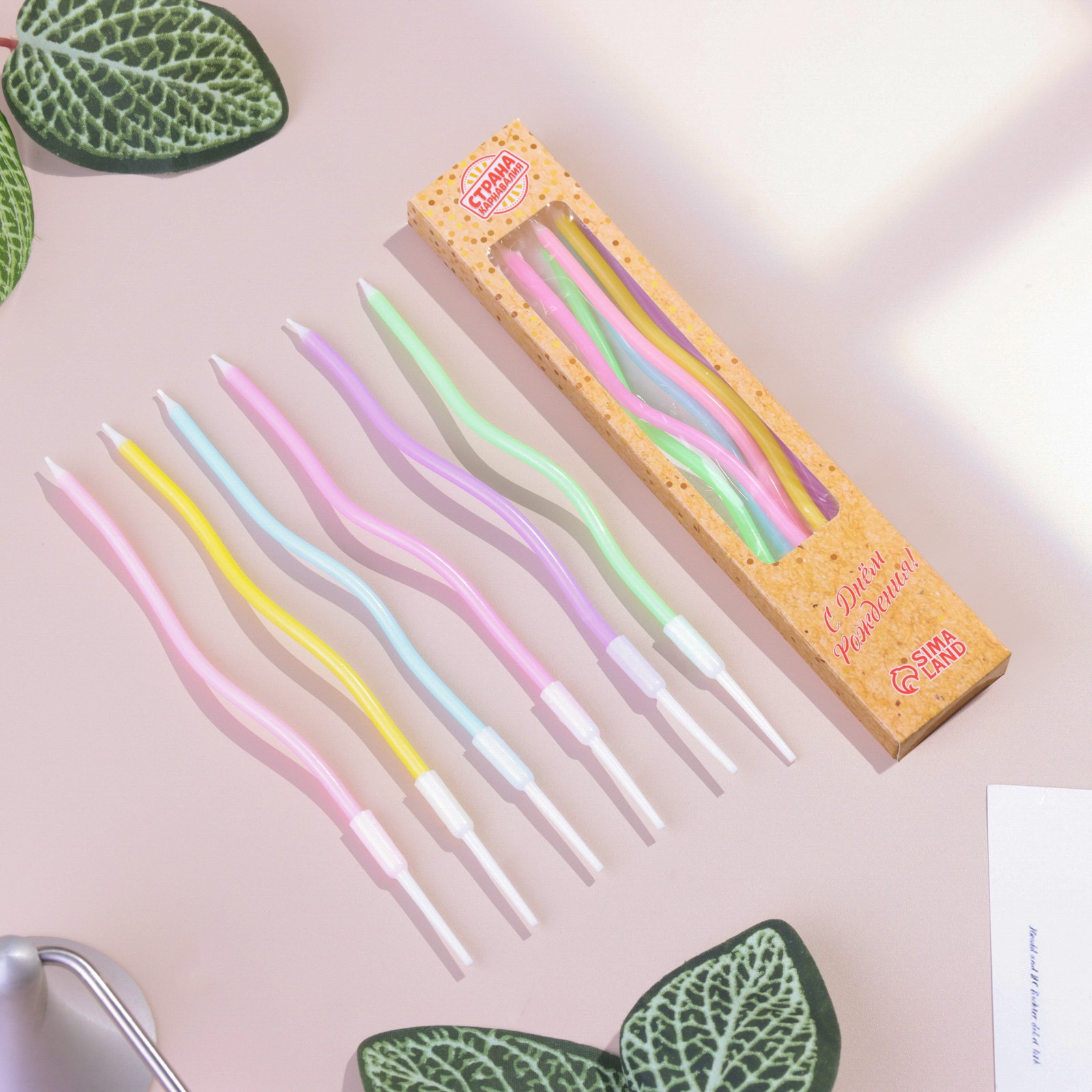 Свечи для торта "Серпантин" 6 шт, разноцветные